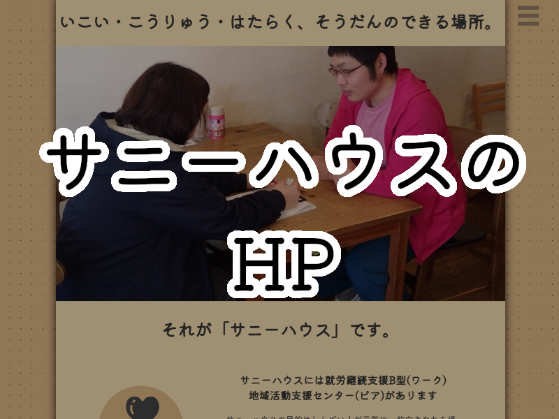 NPO法人えんは障がいのある人もない人も共に支え合える世の中を作るため、日夜活動しています。 施設を利用したい当事者・その家族の方は「サニーハウス」のHPへ。 カフェを利用したい地域のみなさんは「321かふぇ」のHPをご覧ください。